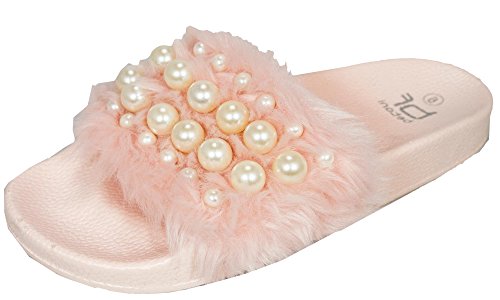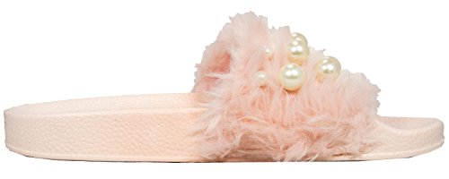 Product DescriptionBetani Women's faux pearl fur slides. Open toe front 1" platform sole. Imported.0