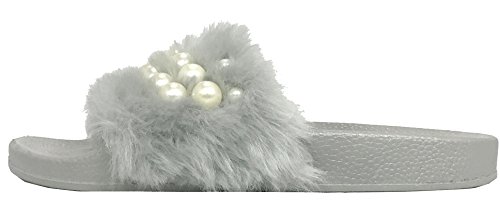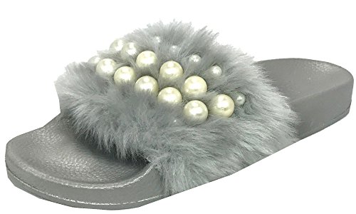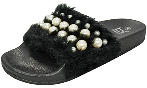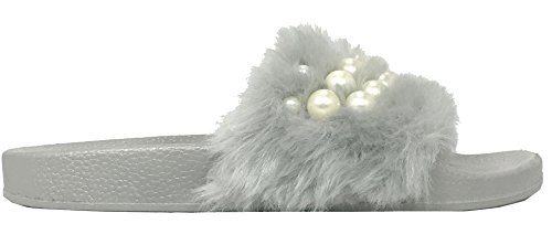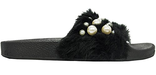 Betani Women's Embellished Faux Fur Pearl Slipper Slide Sandal