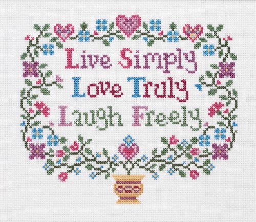Janlynn Cross Stitch Kit, 7-Inch by 8-Inch, Live, Love, Laugh