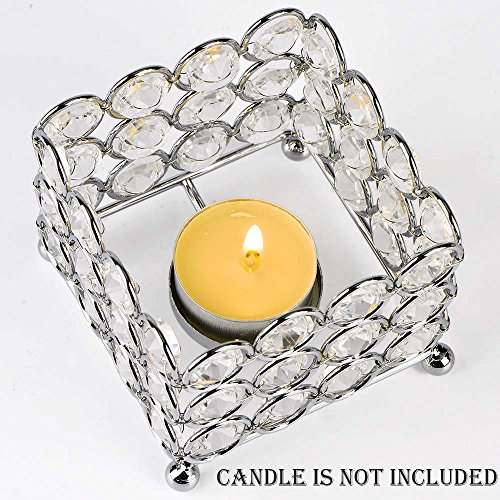 Crystal Candlesticks Holders Candle Holders for Home Decor,Wedding Table,Best Gift for Birthday,Housewarming,Anniversary(Square-Silver)