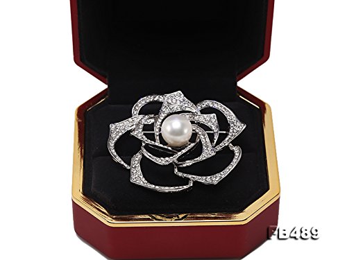-. Feature : High quality rose pearl brooch. The mainstone is a 13mm white freshwater pearl, very smooth and lustrous. / The petals are fully inlaid with shiny zircons. Rose is a symbol of love, white pearl is known as "the queen of gems" symbolizes unblemished perfection, modesty and purity. / The bombination of these two is classic. Rose shape pearl brooch can add to your feminine charm. Wearing it on your little black dress, blouse, cardigan, hat, bag, or even shoes, to get the finishing touch. / We have several major pearl cultivation farms in China, our product categories vary from all styles of freshwater and saltwater pearl jewelries to dozens of semi-gemstone varieties.you are welcome to order in bulks and great offers will be provided. / Any question or request on our pearls quality, size, setting, metal type, please feel free to contact us! We are always here to help you.