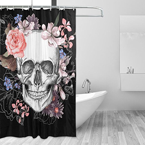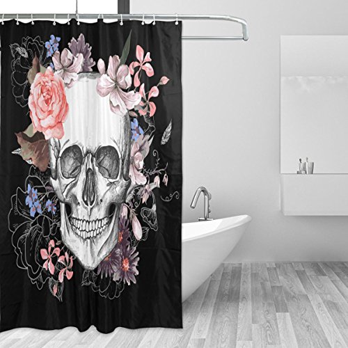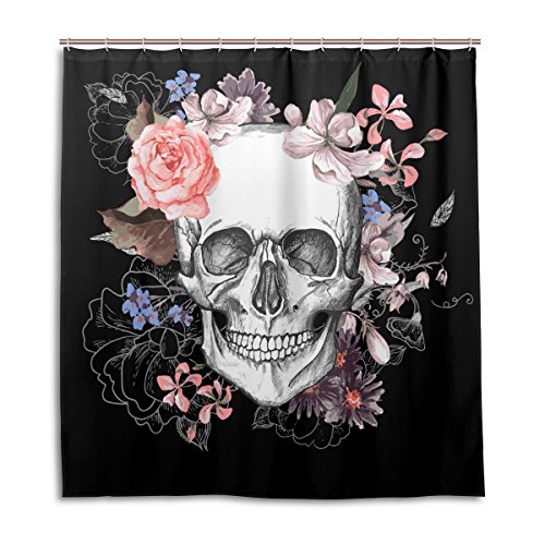 -. Title : Aideess Skulls Decorations Collection, Rose Flower Dead Sugar Skull Head Design Skeletons All Saints Day Halloween Image, Polyester Fabric Bathroom Shower Curtain, 36 Inches Long, Black