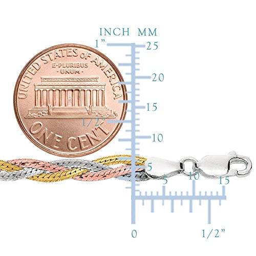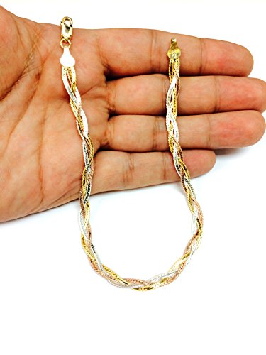 -. Title : Tricolor Braided Snake Chain Anklet In Sterling Silver, 10"