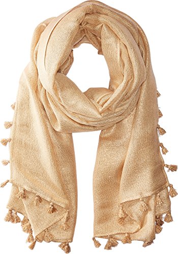 Luminous metallic threads are woven throughout the acrylic-blend scarf.