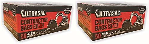 UltraSac Contractor Bags Value 50 Pack, 42 Gallon, 2'9" X 4' 3 mil (2-(50 Pack))