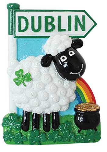 Resin Magnet with Irish Sheep with Rainbow, Pot of Gold and Dublin Sign