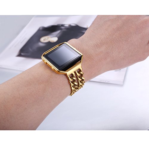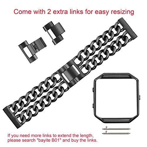 -. Brand : bayite -. Feature : Stainless Steel Chain Links Band with Metal Frame for Fitbit Blaze / Easy to remove folding clasp by yourself and adjust size. No tool is needed / Simple operation and easy size adjustment with no tool. Fits all wrists sizes Small 5.3" - 6.1" Large 6.2" - 7.1". It's better to choose large if your wrist between 6.1" - 6.2" / Packaging included: 1 x Watch band+ 1x Stainless Frame. The Fitbit device is not included / Order with confidence with a 1 year warranty for replacement or full refund without return the item -. IsAutographed : 0 -. IsMemorabilia : 0 -. Label : bayite -. Manufacturer : bayite -. ProductGroup : Sports -. ProductTypeName : OUTDOOR_RECREATION_PRODUCT -. Publisher : bayite -. Studio : bayite -. Title : bayite Replacement Stainless Steel Chain Bands with Metal Frame for Fitbit Blaze , Large Small Silver Rose Gold
