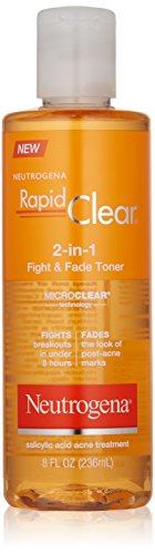 Neutrogena Rapid Clear ; 2in1 Fight & Fade Toner is the first acne toner designed to reduce breakouts in just hours, plus fade the look of postacne marks for clearer, more eventoned skin. The refreshingly clean formula dissolves away oil as MicroClear ; technology speeds maximumstrength acne medicine straight to the source of breakouts. It's clinically proven to reduce pimple size, swelling, and redness in under 8 hours and accelerates surface cell exfoliation to help fade the look of postacne scars in as little as one week. Glycolic acid accelerates skin cell exfoliation MicroClear ; technology Maximum strength salicylic acid acne treatmentFeature