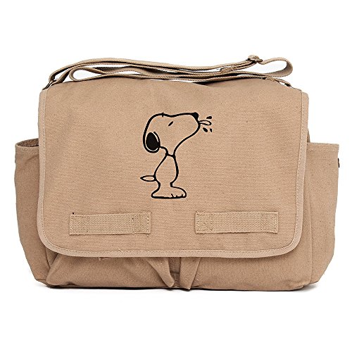 -. Title : Snoopy Raz Heavyweight Canvas Messenger/Diaper Shoulder Bag in Mocha & Black