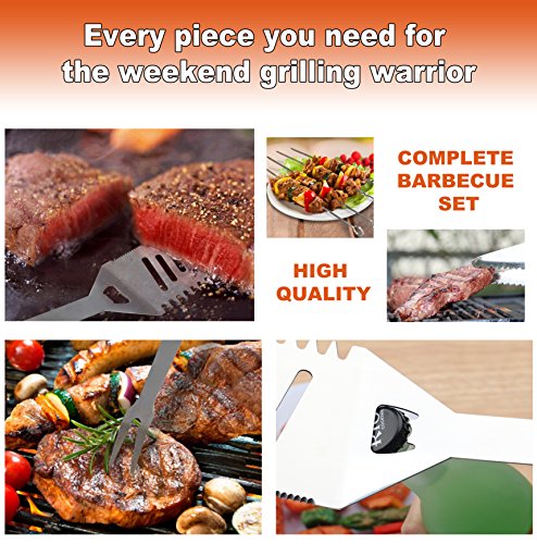 - DURABLE STAINLESS STEEL TOOL CONSTRUCTION: Good quality, substantial construction for lasting long. They are nice quality, sturdy, and attractive which makes you look like a professional griller. Dishwasher safe.