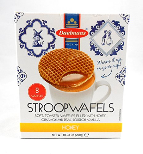 -. Feature : The original Dutch stroopwafel / Soft, toasted wafers filled with honey, cinnamon and real vanilla / Contains 8 jumbo stroopwafels of approximately 3.5 diameter (total net weight 10.2 oz/290 g) / No artificial flavors, colors, preservatives, or partially hydrogenated oils