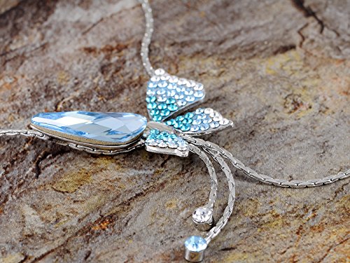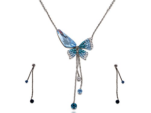 -. Title : Alilang Delicate Sapphire Blue Butterfly Dangle Crystal Rhinestone Necklace Earring Set