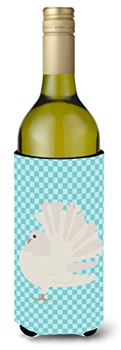 Caroline's Treasures BB8124LITERK Silver Fantail Pigeon Blue Check Decorative Bottle Hugger, 750 ml, Multicolor