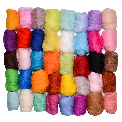 Needle Felting Wool, 40 Colors, Fibre Wool Yarn Roving for Needle Felting Hand Spinning DIY Craft Projects with Felting Needles Kit and Handle by Queenti