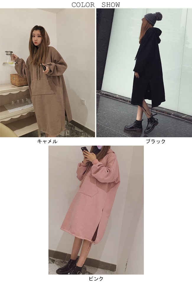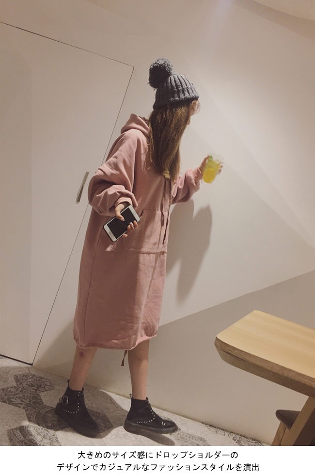ロングパーカー レディース 裏起毛 スウェットパーカー ゆったり ドロップショルダー 女性用 パーカー 厚手 アウター カジュアルレディース用のパーカーが登場大きめのサイズ感にドロップショルダーのデザインでカジュアルなファッションスタイルを演出裏起毛の厚手仕様で秋冬の季節に暖かい守りを与える甘さ抜群のAラインシルエットは若い女の子らしい雰囲気が溢れるフロントポケットのデザインは更にキュートなアクセントを付けて、機能性もアップアウターとして着てもとても可愛いい、重ね着してほかのアウターとのコーデも十分楽しめるカラー:キャメル ブラック ピンク素材 ポリエステルサイズ(cm) M L XL 2XLM 着丈107 バスト116 肩幅59L 着丈109 バスト120 肩幅61XL 着丈111 バスト124 肩幅632XL 着丈113 バスト124 肩幅65ご注意:※サイズは平置きサイズです。素人採寸ですので、若干の誤差がございます、ご了承ください。