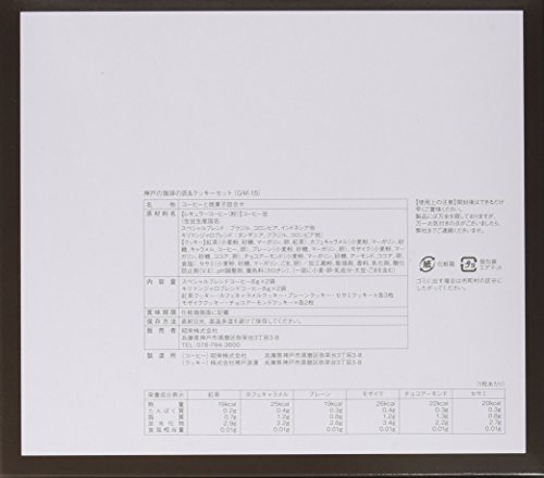 原材料:スペシャルブレンドコーヒー:8g×2、キリマンジャロブレンドコーヒー:8g×2、カフェキャラメルクッキー×3、プレーンクッキー×3、紅茶クッキー×3、セサミクッキー×3、モザイククッキー×2、チョコアーモンドクッキー×2