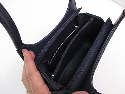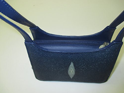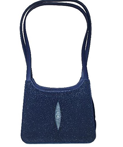 - Womens zipper closure double strap stingray skin leather handbag, blue. Elegant stingray leather with front and back pearl motif, unique to each handbag. GENUINE stingray leather, not embossed PVC or cow leather (there are Chinese manufacturers of fake stingray). MODEL 10706