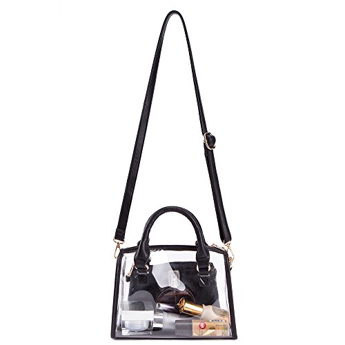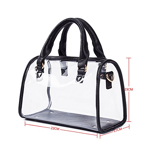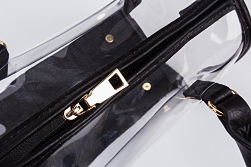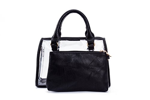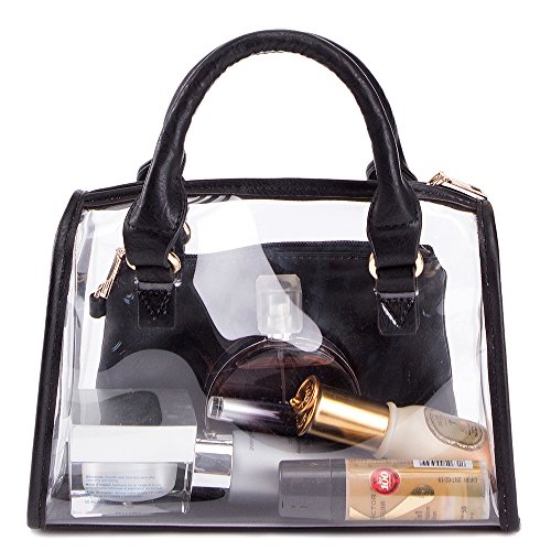 Celaine Womens Premium PU Leather Clear Lightweight Handbag Shoulder Bag Tote - 2-in-1 with Makeup Bag