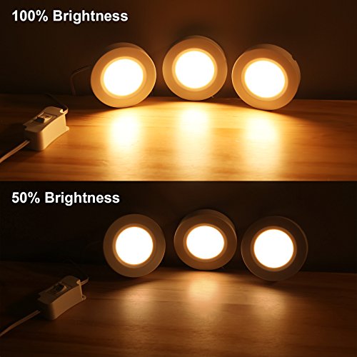 Dewenwils Dimmable LED Puck Lights 3000K 6W Under Cabinet Lighting Recessed or Surface Mounting for Kitchen Counter Shelf Showcase, Set of 3