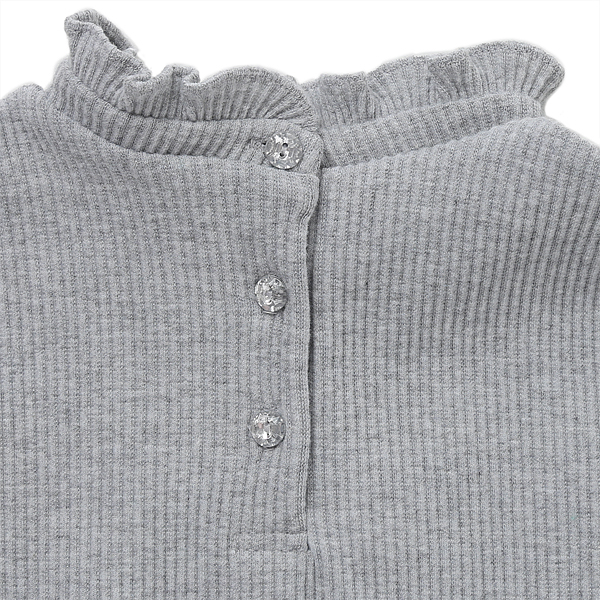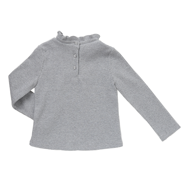 깔끔한 디자인의 골지 티셔츠입니다. 부드러운 멜란지 그레이컬러로 레이어도 코디하시기 용이합니다.