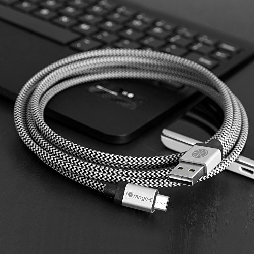 USB Cable, iOrange-E 6.6ft (2M) Micro USB to USB Braided Cable, Quick Charge and High Speed Data Sync for Android, Samsung Galaxy, HTC, Nokia and More, Silver
