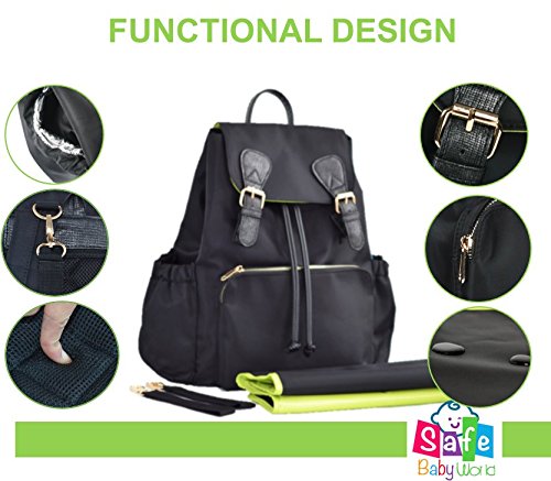 SafeBabyWorld Fashion Diaper Backpack - Specially designed to be multifunction (diaper, school, light travel) meant to be stylish, easily accessible when busy to put/ pull right away items from the bag and have them secured during their travel.