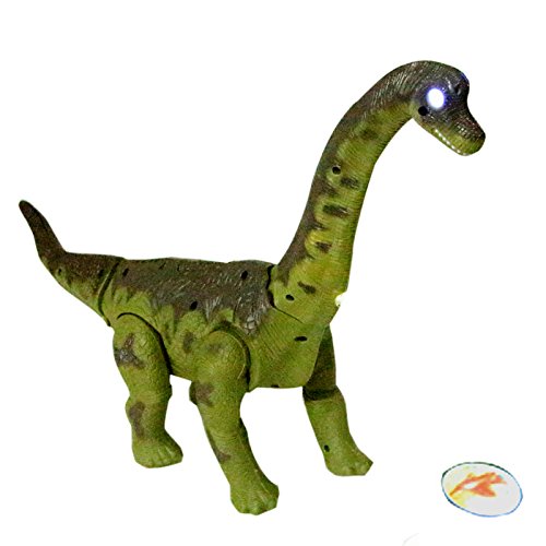 Sun Cling Electronic Toys Walking Brachiosaurus Dinosaur Brachiosaurus Walking Dinosaur makes awesome dinosaur noises and has a fun image projector that projects a hologram type image and lays eggs! Fun for all ages, requiring 3 AA batteries(not included), kids will be enthused to receive this as a gift for any occasion!