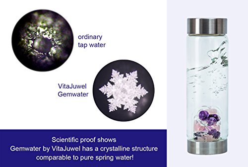 Vitajuwel Wellness gempod contains fairly-traded, conflict-free Amethyst, Rose Quartz, Clear Quartz. This well-balanced composition has already been used for several hundreds of years to inspirit water by countless people all around the world. Most customers find gemwater made with this harmonic blend to taste SMOOTH & MILD.