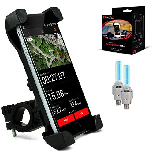 SIMPLE & SECURE LOCK SportifyMe Universal Smartphone Holder is very simple to mount on bicycle handlebar or bike handlebars - no tools needed. Securely lock your phone on phone bike holder with extandable arms with one simple twist. Our universal phone cell phone holder for bike securely fits your phone while cycling or bike riding. Comes in PREMIUM BOX (perfect for gifts) packed with FREE GIFT - 2x free wheel led bike light.