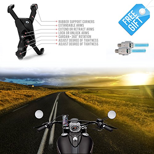 Universal Smartphone Holder #1 Phone Cell Phone Holder for Bike | iPhone 6 Bike Mount Phone Holder fits all big phones | Bike Handlebars Mount comes in PREMIUM BOX & FREE GIFT 2x wheel led bike light