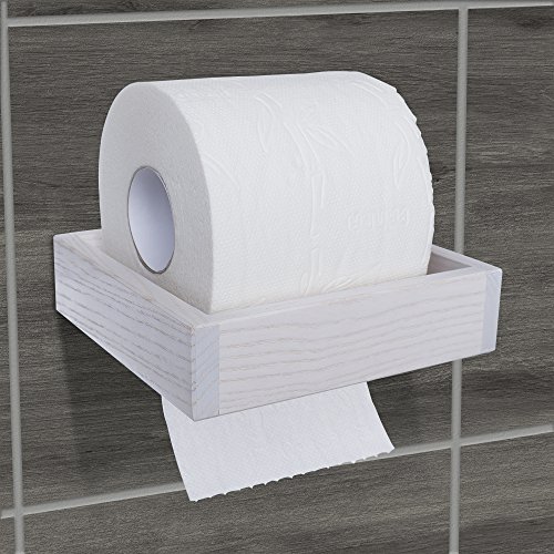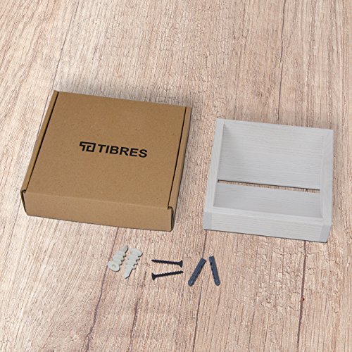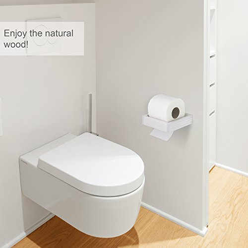 Tibres - Wall Mount Toilet Paper Holder and Dispenser - Tissue Paper Holder for Easy Roll Change - Solid Natural Wood - White