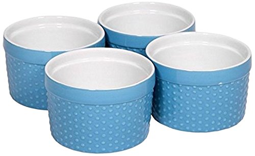 Home Essentials Mini Stoneware Hobnail Ramekins Textured Porcelain, Mousse, Custard, Baking, Soufflés, Quiche Cups, 6 oz, Aqua, Set of 4