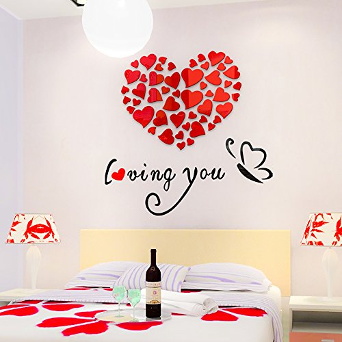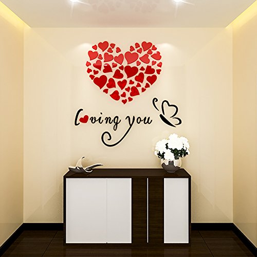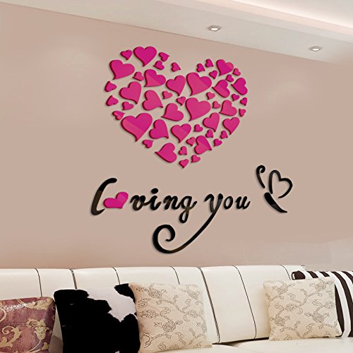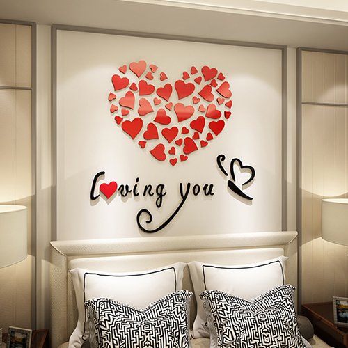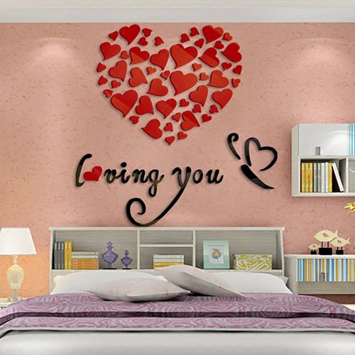 -. Title : Sweet Couples Bedroom Wall Decoration Of Loving You Heart Shape 3D Acrylic Wall Sticker
