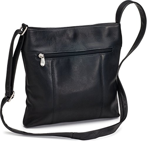 Ld-9724-bl color: Black features: -Genuine full grain leather. -Comes with 2 exterior zip pockets, adjustable strap, 1 interior zip pocket and 2 interior slip pocket. -Handcrafted. -Magnetic closure. -Antique hardware. -Manufacturer provides 1 year warranty against defects. Primary material: -Leather. Expandable: -Yes. Tablet pocket: -Yes. Key clip: -Yes. Closure type: -Top zip. Gender: -Female. Occasion: -Casual. Dimensions: -Drop length: 24". Overall height - top to bottom: -11.5". Overall width - side to side: -11.5". Overall depth - front to back: -2". Overall product weight: -2 lbs.Feature