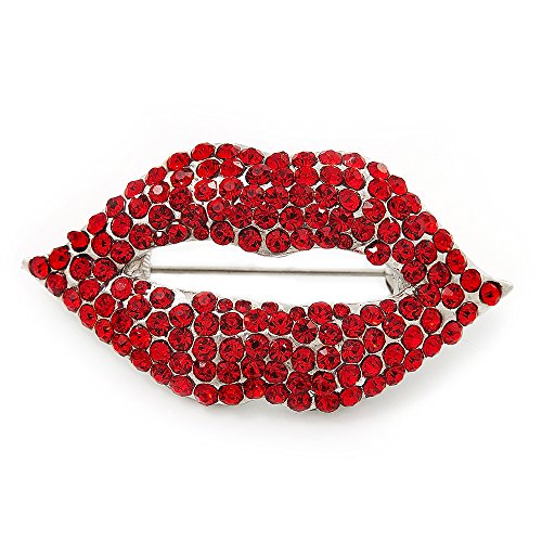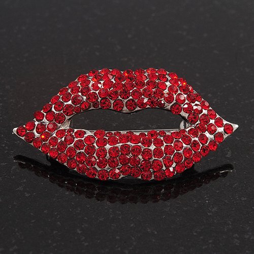 -. Title : Sparkling Hot Red Crystal Lips Brooch (Silver Plated Metal)
