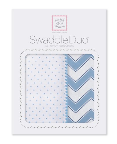 SwaddleDesigns SwaddleDuo, Set of 2 Swaddling Blankets, Cotton Muslin + Premium Cotton Flannel, Blue Classic Chevron Duo