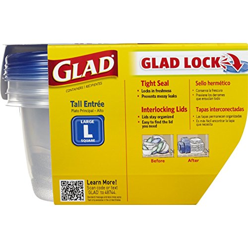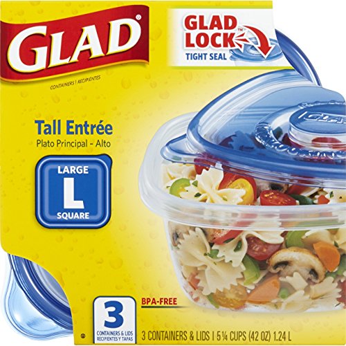 GladWare Tall Entree Containers are ideal for packing sandwiches, salads, and soups for on-the-go meals at work or school. The square blue lids form a tight seal to help keep food fresh in the refrigerator, pantry, or freezer while reducing the likelihood of leaks. The 42-ounce, square containers fit easily into bags, lunch boxes, and totes for quick meals at the office, at school, or in the car.