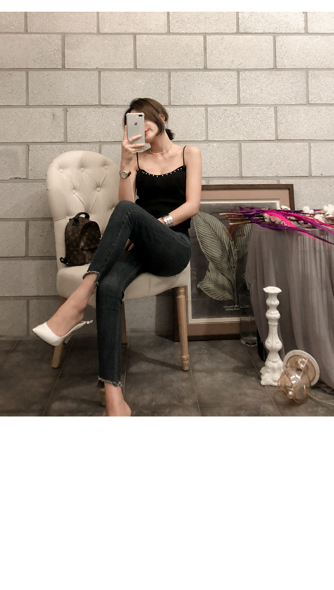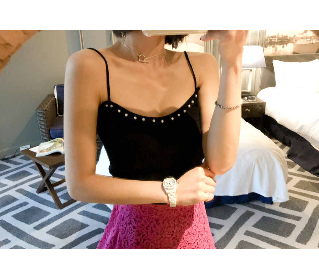 ネックラインに晋州装飾がポイントで入っていて