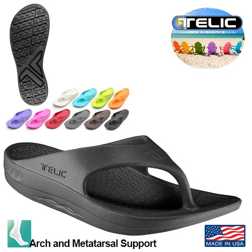 Telic uses a new material called Novalon™; a body-heat activated, waterproof, feather-light material that is durable, elastic, and pillow-soft. Contoured to support the arches of your feet, all styles feature a deep heel cup with