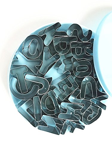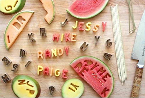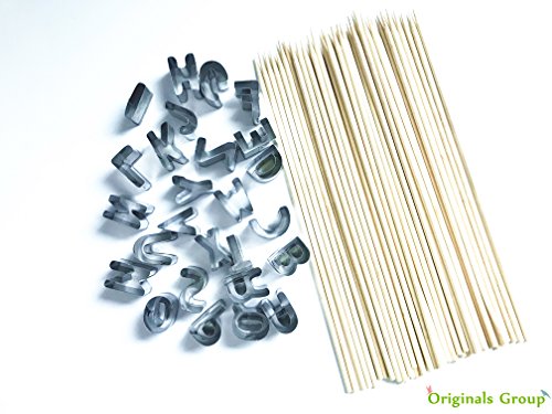 A-Z 26-Piece Alphabet Cookie Cutters and Pack of 50 Bamboo Sticks Biscuit Fruit Cutter Alphabet Letter Shape Mold for Drink Markers and Place Holders