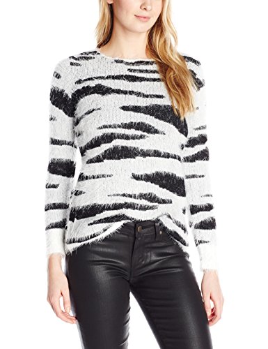 Long sleeve boat neck zebra print feather yarn sweater pullover.
