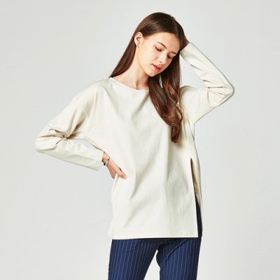 앞 슬릿의 경우 살짝 벌어져 있는 라인으로 다른 티셔츠와 매치해서 레이어링하기 좋습니다.