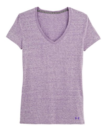 Cotton-rich tri-blend fabric has a soft, athletic feel for superior comfort and performance. Signature Moisture Transport System wicks sweat to keep you cool, dry, and light. Anti-microbial technology eliminates odors to keep your gear fresher, longer. Lightweight, stretch construction improves mobility & is perfect for layering. Deep V-neck collar & slimmer fitted fit deliver a sleeker, more feminine silhouette. Unique straddle stitch on shoulders add style & texture. UA logo on bottom left hem shows your preference for performance. Branded neck tape with updated women's wordmark for a hit of style. 3.83 oz Cotton/Polyester/Rayon. Imported.Feature