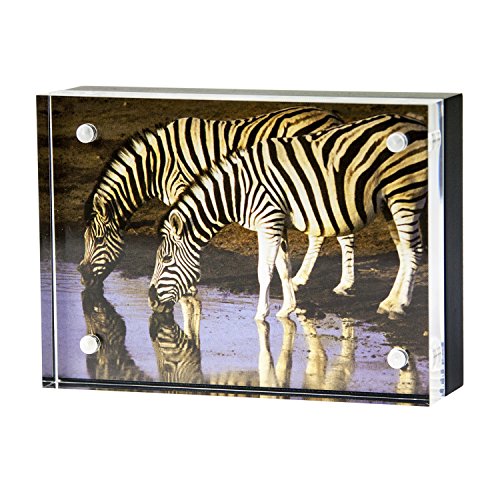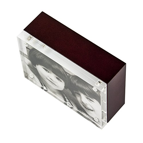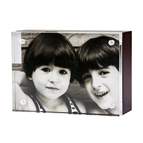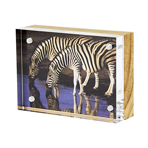 The Wood Back Magnet Frame, by Canetti, is made of one panel of solid, clear acrylic and one panel of wood, attached by tiny magnet points.