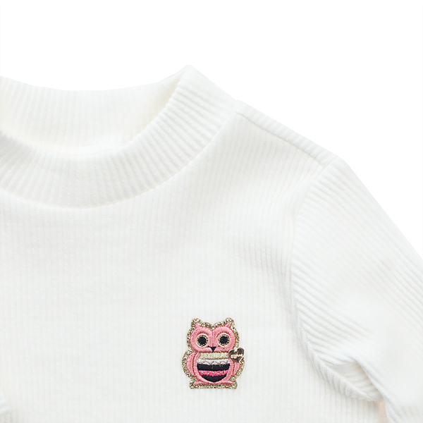 부엉이 페치가 포인트가 되어 큐티한 이미지연출이 용이하며 골지원단으로 고급스럽게 입을 수있는 티셔츠입니다.