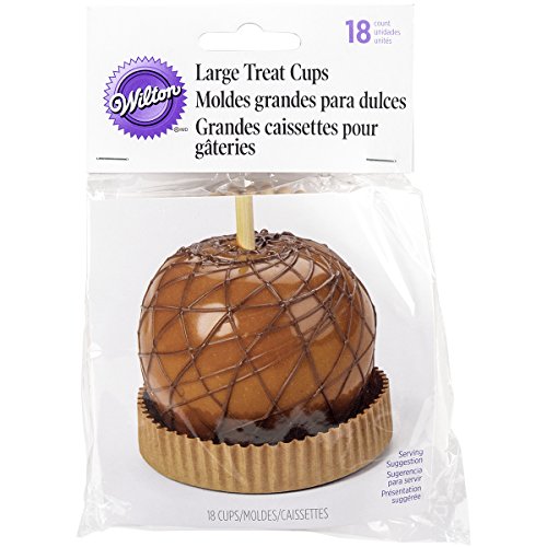 Studio : Wilton Publisher : Wilton Binding : Kitchen Product Description Serve Caramel Apples using these 3.75 Inch Large Treat Cups. The crimped edge and natural unbleached paper gives your caramel apple a rustic presentation, perfect for fall. The raised edge is perfect for catching nuts, sprinkles or other extras. Plus, it’s great for placing just-dipped candied apples to dry and then serve. Includes 18 treat cups. 0