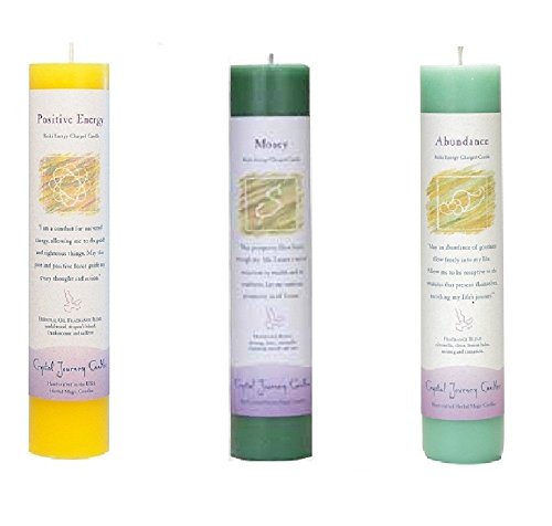 Crystal Journey Reiki Charged Herbal Magic Pillar Candle Wealth and Health Bundle (Positive Energy, Money, Abundance)