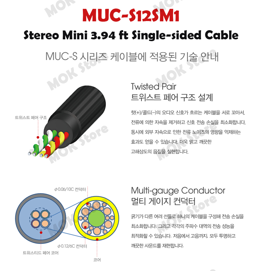 - MUC-S12SM1 Stereo Mini 3.94 ft Single-sided Cable