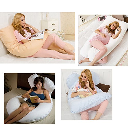 -. Feature : 100% Cotton Cover / Rest comfortably with the U-shaped bed pillow that supports your back, hips, knees, neck and head / UNIQUE DESIGN & ERGONOMICAL- Super soft pregnancy body pillow lets you get a good night of sleep throughout your pregnancy. The uniquely designed to follow the natural shape of the pregnancy mom, oversized U-shaped pillow, long enough for you to stretch out and support both sides of your body / EXCELLENT QUALITY - Cover: 100% pure cotton; pregnancy body pillow filling: polyester, which offer long-lasting resilience and durability. The machine washable cotton percale pillowcase comes with a zipper for easy removal and cleaning / VERSATILE PRODUCT & MULTI-FUNCTIONAL - The maternity body pillow creates a comfortable position when sleeping, reading, nursing, watching TV. 360° Total Body Support for a painless and sound sleep