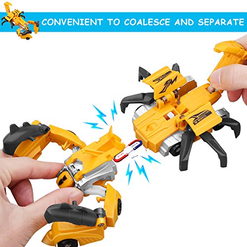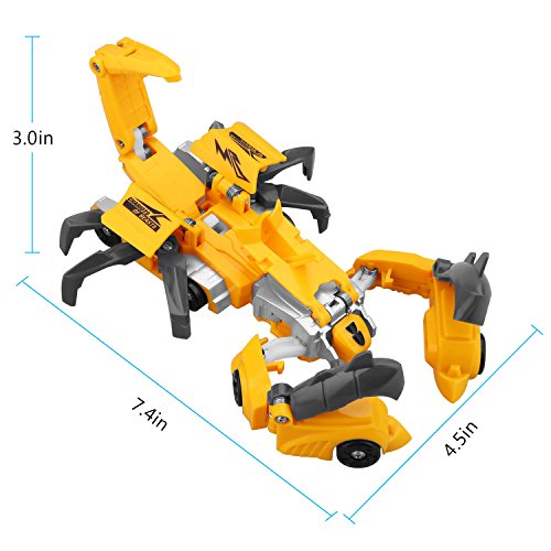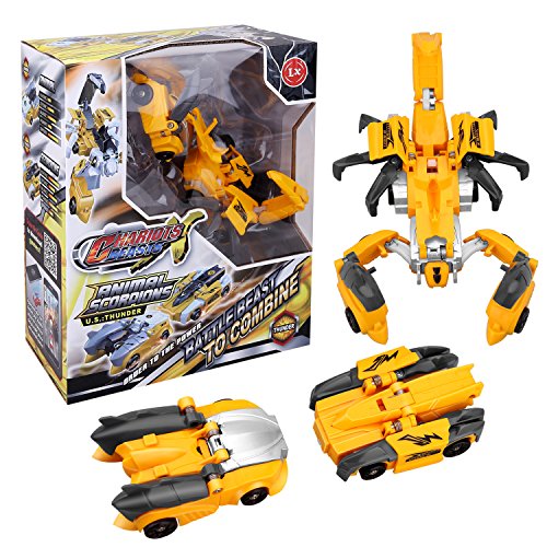 -. Binding : Toy -. Brand : Langerza -. EAN : 7644028253890 -. Feature : Package include 2 cool transforming cars / Crash both cars towards each other will automatically transform into the scorpions / Scorpion mode is easy to turn back to car mode / The vehicles combine by magnetic force,transforming by elastic force / This toy is suitable for ages 3 and up. -. Label : Langerza -. Manufacturer : Langerza -. MPN : 2 -. PartNumber : 2 -. ProductGroup : Toy -. ProductTypeName : TOYS_AND_GAMES -. Publisher : Langerza -. Studio : Langerza -. Title : Langerza 2 DIY Play Vehicles Toys Transformer Automatically Transforming from Cars to Scorpion Model by Crash
